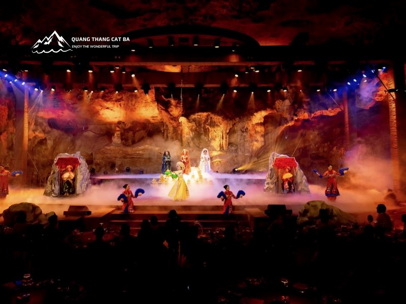 - Đoàn di chuyển đến hang Ngọc Rồng thăm quan và dung bữa tối: Hãy bước vào một buổi tối thần diệu bên trong Hang Ngọc Rồng tại Quảng Ninh, nơi truyền thuyết cổ xưa, ẩm thực tinh hoa và những màn biểu diễn trực tiếp giao thoa. Lấy cảm hứng từ truyền thuyết về Mẹ Rồng Thiên Địa và viên ngọc thiêng liêng của bà, trải nghiệm văn hóa khó quên này hòa quyện kể chuyện đắm chìm với bữa tiệc tối sang trọng. Khi câu chuyện về đội tàu rồng dần hé mở dưới ánh sáng lung linh của những nhũ đá, thực khách được cuốn hút bởi những hình ảnh kịch tính, âm nhạc truyền thống và điệu múa duyên dáng. Giữa các cảnh diễn, hãy thưởng thức các món đặc trưng như cua biển xốt bơ với trái chanh dây, tôm hùm luộc và súp gà nhân sâm. Buổi tối khép lại với món tráng miệng thạch ngọc trai vàng – biểu tượng của hòa bình, hy vọng và sự kỳ diệu bền vững.